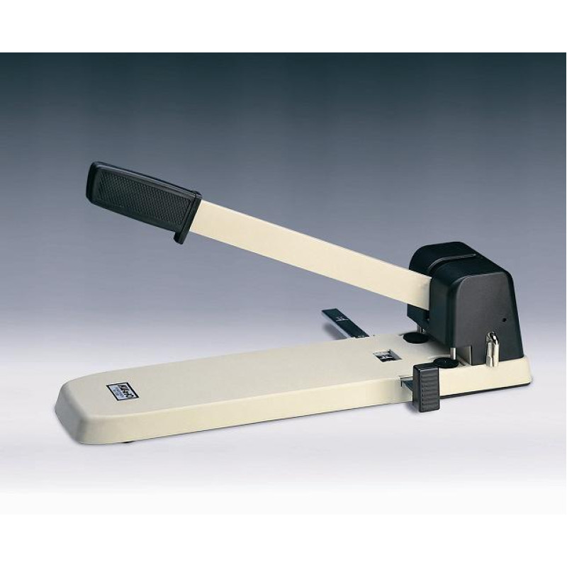 - Tính năng nổi bật: Cần bấm dài trợ lực (long handle), thước đo giấy chính xác (precise paper guide), khóa tay cầm an toàn (built-in handle lock), khay chứa vụn lớn, thiết kế ergonomics dễ thao tác